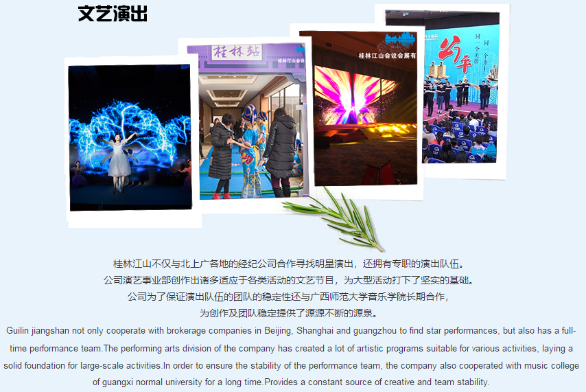 桂林江山會議會展有限責公司是一家專業的MICE公司;是傳統服務與信息技術相結合的科技型公司。 公司立足于線下活動的豐富經驗,堅持運用信息技術為各類活動(項目)提供更優質與便捷的管理與服務。公司開發的《冬瓜云服務與管理系統》《雙線展覽平臺》《注冊通》《報到通》《多點位全景直播平臺》等應用軟件處于行業領先地位。桂林江山會議是一個大家庭,于2012年創立,經過長期的經營,吸納與培訓了大批關于會務服務、設計創意、公關演藝、會獎活動、信息技術等項目的眾多專業人材,涉及展覽工程搭建、慶典活動策劃、影視制作與直播、大型文藝演出、會獎旅游、H5、小程序等軟件的開發等眾多業務。江山會議由一支具有超前的營銷理念并...